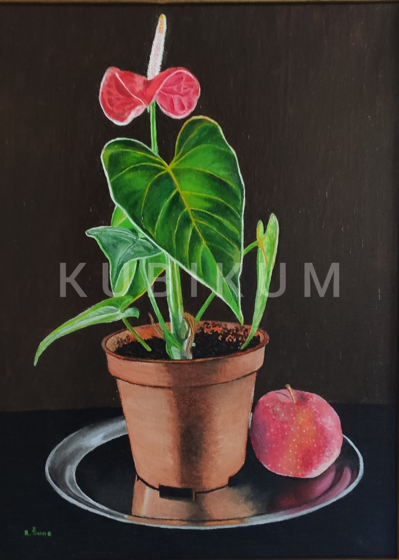 Olejomaľba na kvalitnom plátne v drevenom ráme, damarový lak.