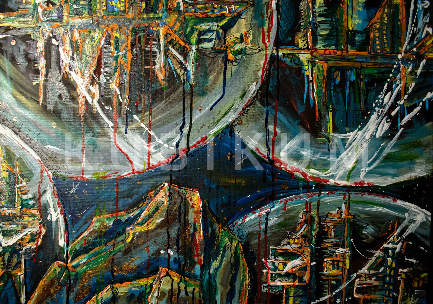 Zobrazení budoucnosti v malířské formě. S myšlenkou vesmíru a života v něm, protože život je všude tak proč ne li i ve vesmíru.