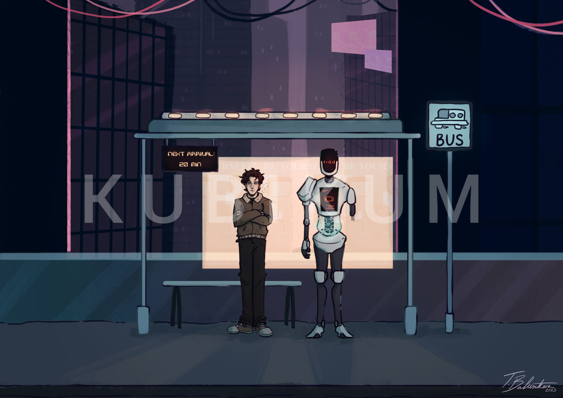 Pokrok technologií v nás může vzbuzovat fascinaci ale také nejistotu. Nevíme, co bude za rok, za deset či padesát let. Můžeme se však pokusit žít v souznění s našimi novými realitami a uvědomit si, že základem každé umělé inteligence, každého robota a přístroje jsme právě my. Ráda bych věřila, že tato lidskost v našich výtvorech přežívá. Touto prací se snažím tuto symbiózu člověka a stroje zachytit.