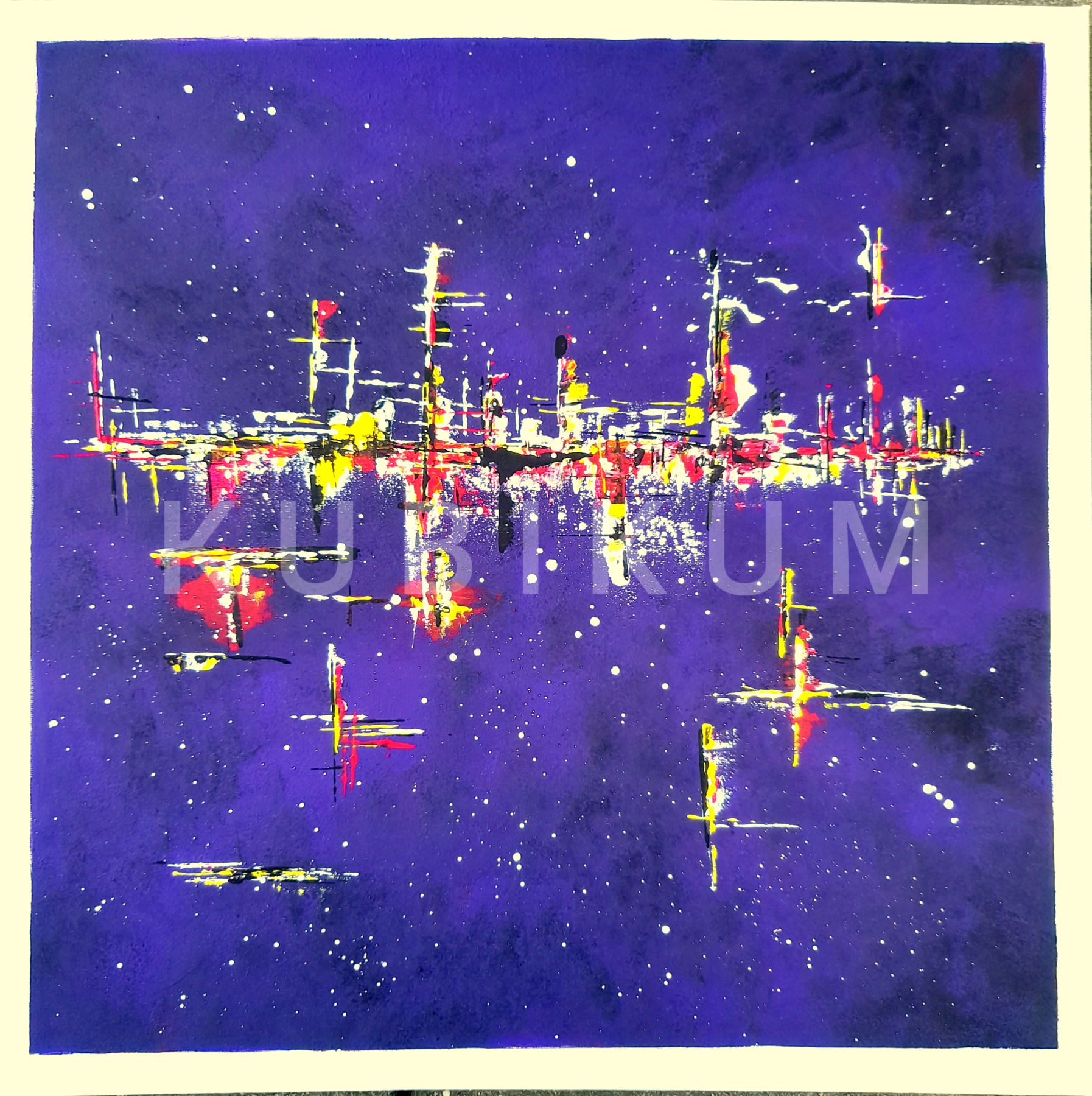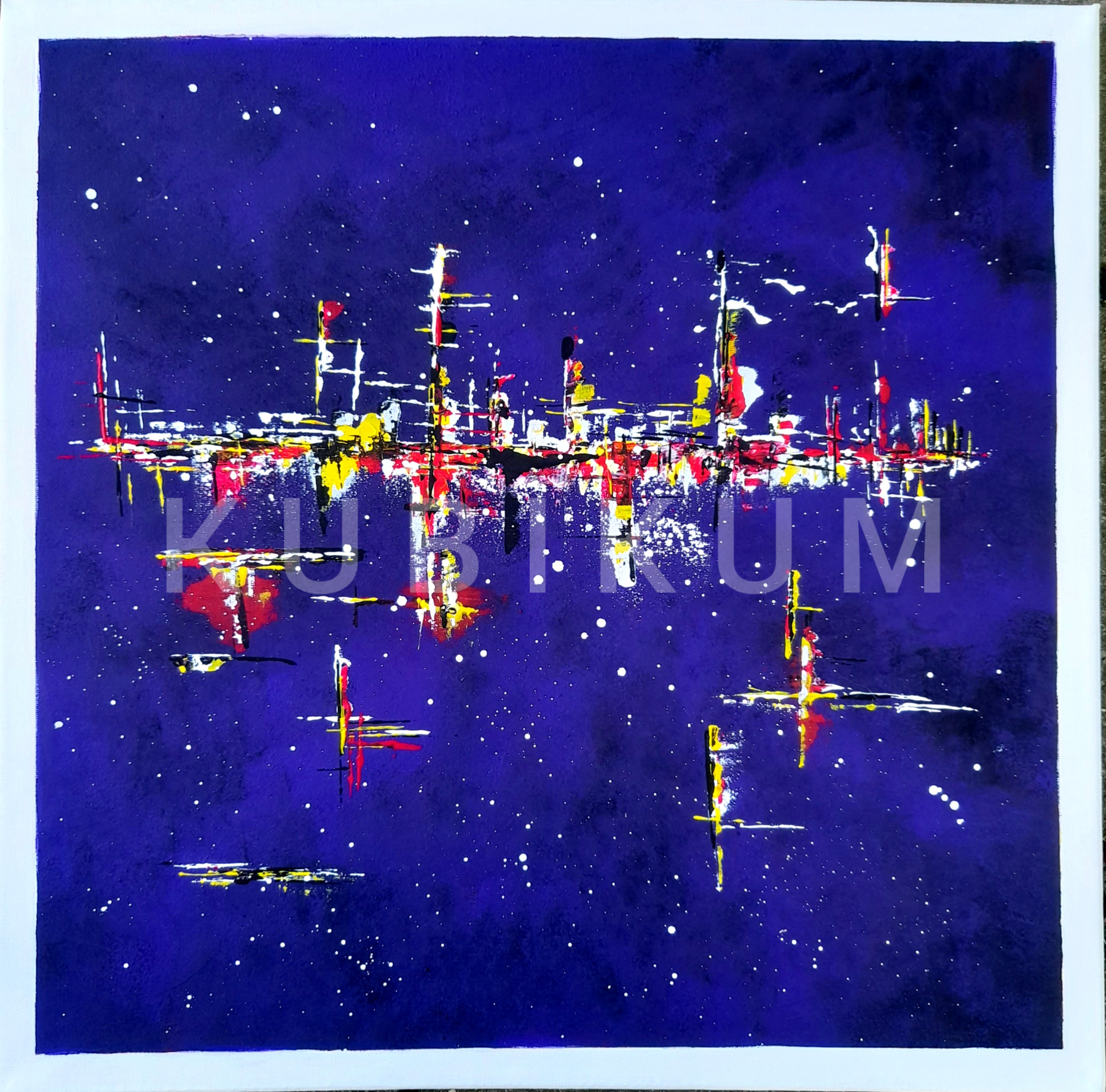 Dominantní barvou pozadí je fialová barva. Zakončeno lakem, který ochrání před případným znečištěním a navíc dodá jemný lesk - boky plátna jsou natřeny barvou ladící s pozadím, můžete ihned pověsit.