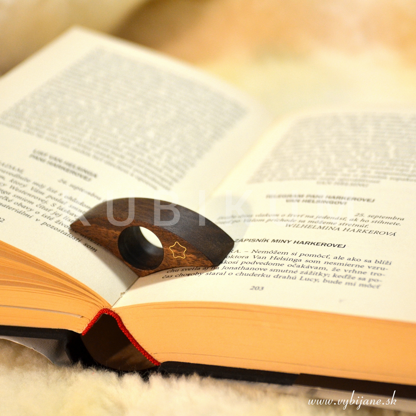 Drevená záložka do knihy je pomôcka pri čítaní jednou rukou, kedy si palec vložíte do záložky, pohodlne čítate knihu a v druhej ruke ceruzka na podčiarkovanie :)